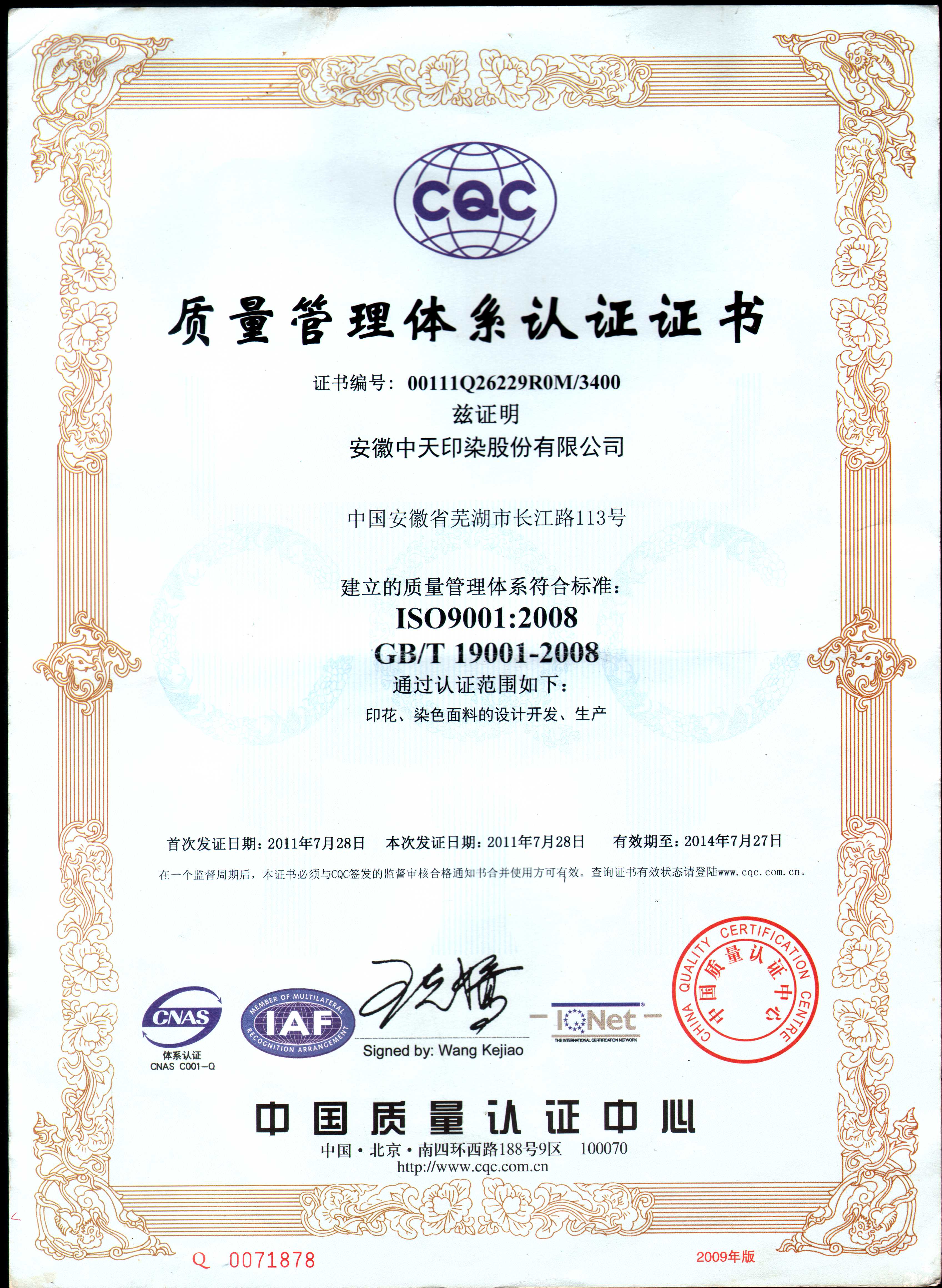 2011年榮獲質量管理體系認證