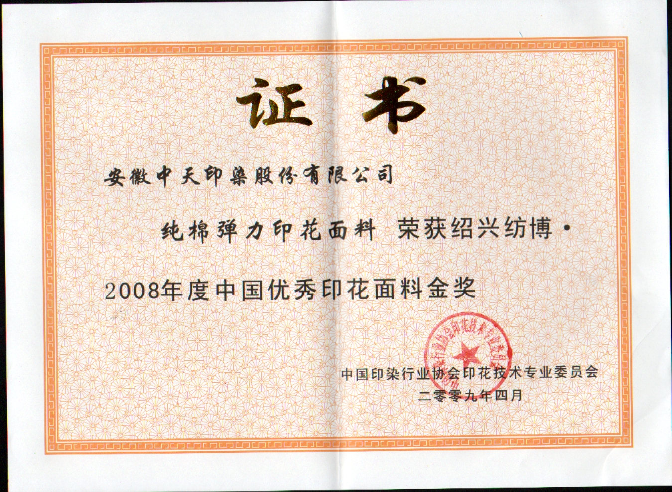 純棉彈力印花面料榮獲中國優秀印花面料金獎