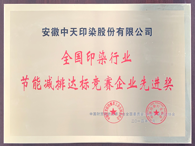 全國印染行業(yè)節(jié)能減排達(dá)標(biāo)競(jìng)賽企業(yè)先進(jìn)獎(jiǎng)